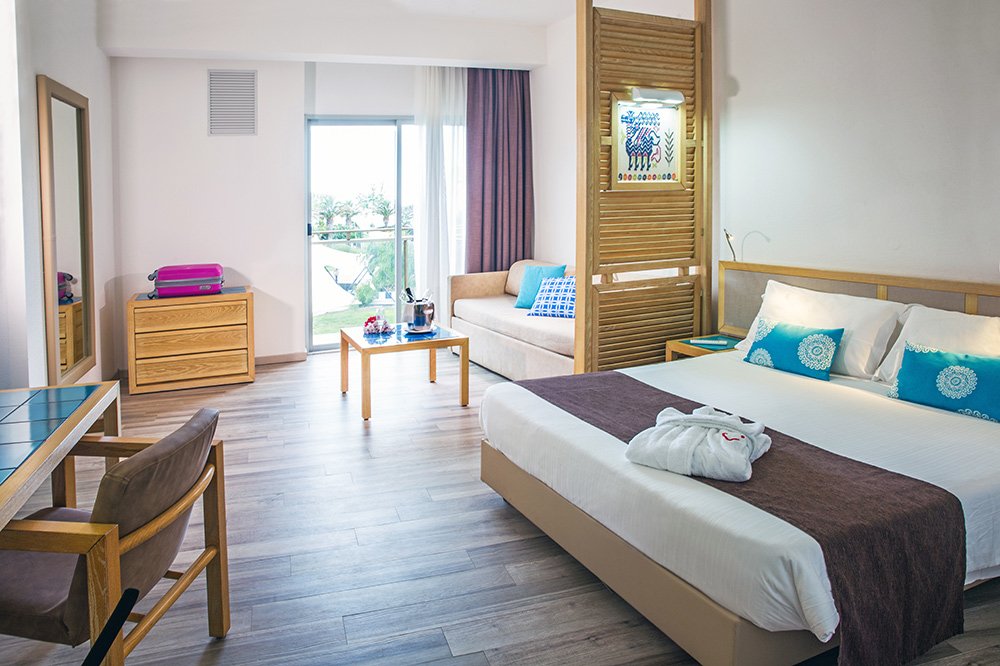 A strandon a szálloda vendégei szobánként 1 napernyőt és 2 napozóágyat használhatnak, amelyek a 3. sortól ingyenesen vehetők igénybe. Az első két sorban ez a strandszolgáltatás felár ellenében vehető igénybe (lásd Top és Top Plus szolgáltatások).